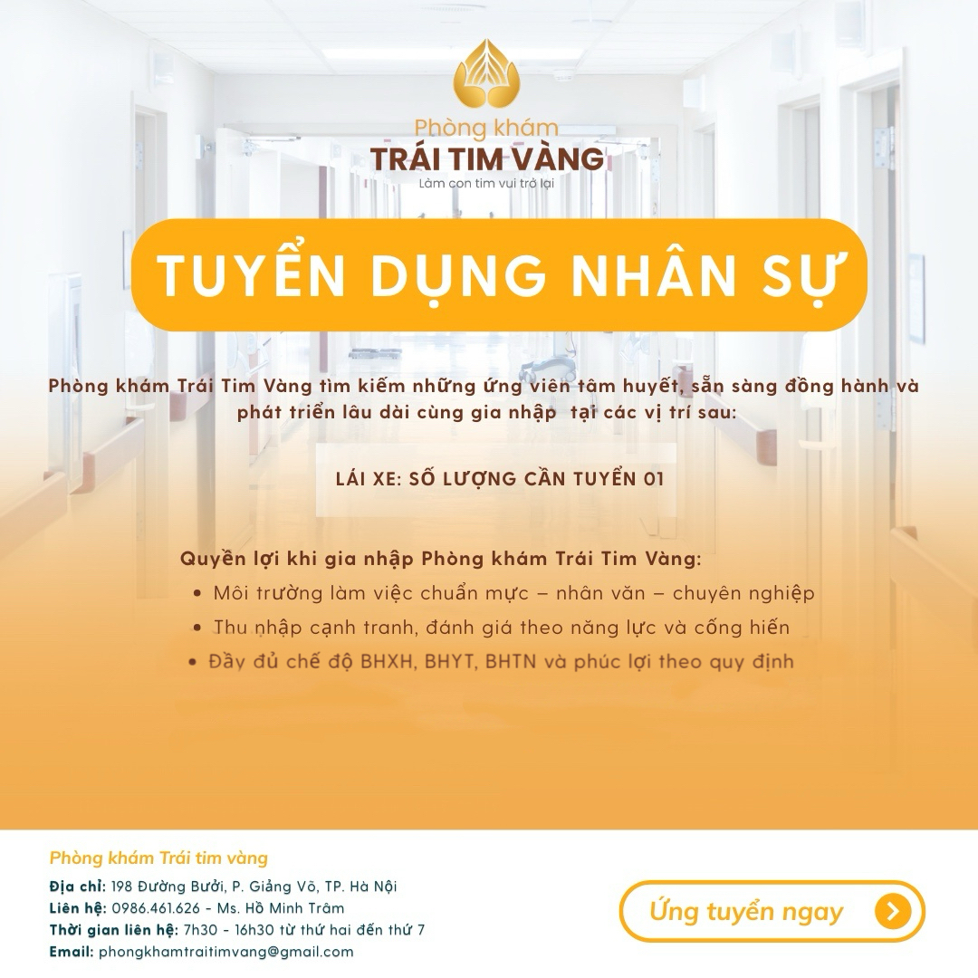 Phòng khám Trái Tim Vàng hiện đang tìm kiếm những ứng viên tâm huyết, trách nhiệm để cùng đồng hành và phát triển lâu dài.